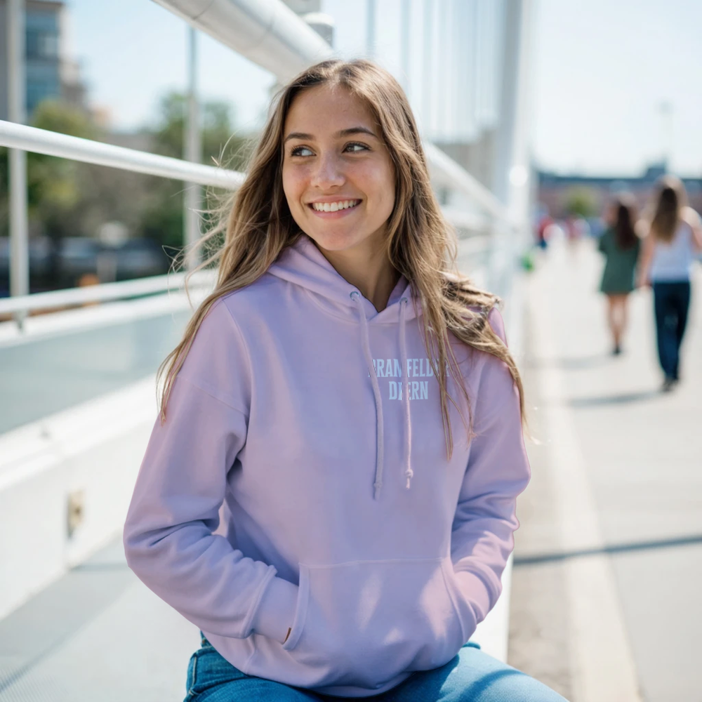 Die bequeme Unisex-Silhouette mit Kapuze und Kängurutasche sorgt für einen entspannten, alltagstauglichen Look – perfekt für Spaziergänge durch Bramfeld, Treffen am See oder den Weg durch die Stadt.